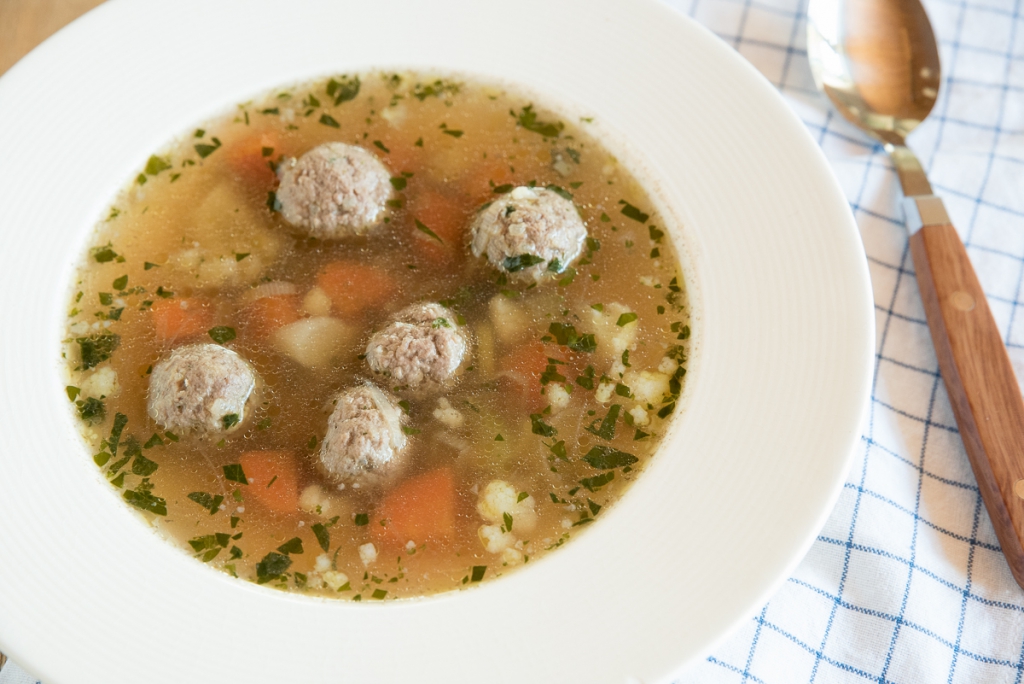 Soepie? Dit is de echte groentesoep met gehaktballetjes zoals je oma die vroeger maakte. Het geheim van deze soep zit hem natuurlijk in de krachtige vleesbouillon die je zelf maakt. En dat is helemaal niet moeilijk! Het trekken van de vleesbouillon duurt een paar uurtjes maar kun je rustig al een dag van tevoren doen. Ook de gehaktballetjes kun je al een dag van tevoren draaien. Zo hoef je de soep de volgende dag alleen nog maar even af te maken. Serveer wat vers afgebagroentesoep met gehaktballetjeskken stokbrood erbij en smullen maar!