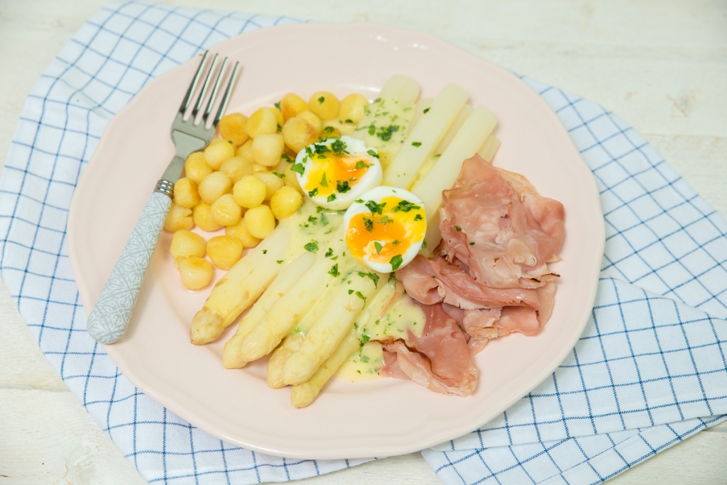 Een heel jaar heb ik er naar uitgekeken en nu kan ik er eindelijk weer van genieten: witte asperges! Dit klassieke recept met beenham, kleine krieltjes, een zachtgekookt eitje en zelfgemaakte aspergesaus verveelt nooit.
