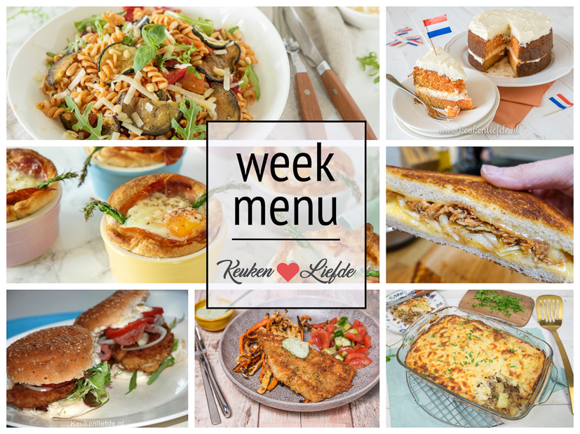 Mocht je vandaag of aankomend weekend alvast je boodschappenbriefje maken voor volgende week, check dan eerst even dit weekmenu! Elke vrijdag vind je hier een nieuw weekmenu met daarin lekkere en gevarieerde maaltijden om doordeweeks op tafel te zetten maar ook soms een lekker lunchgerecht, hapje of gebak. Elke dag wat anders, zo blijft het leuk en lekker!