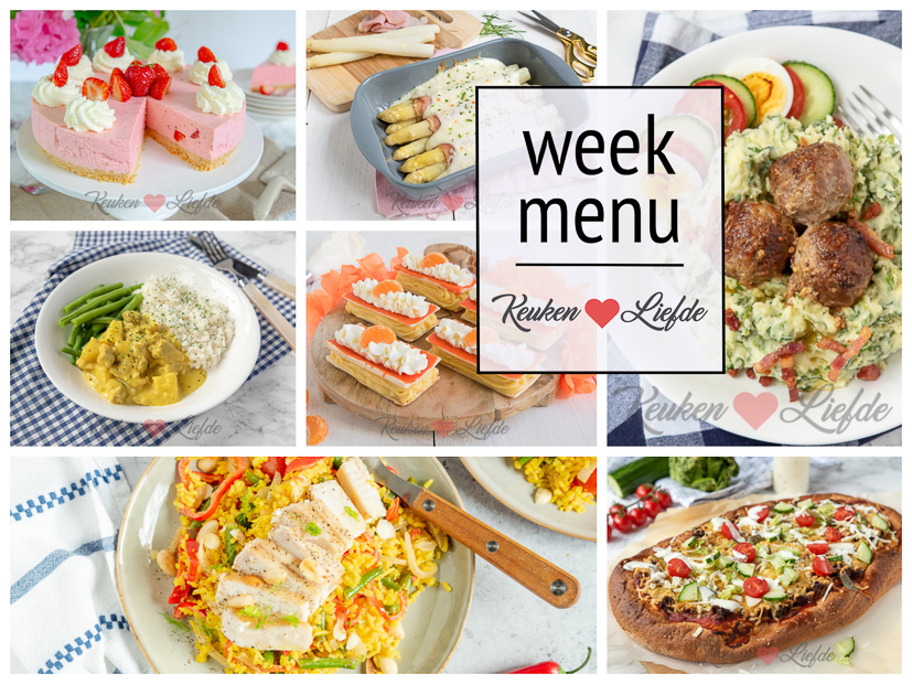 Elke vrijdag delen wij een nieuw weekmenu met lekkere en gevarieerde maaltijden voor elke dag! En natuurlijk wat lekkers voor in het weekend. Laat je inspireren!