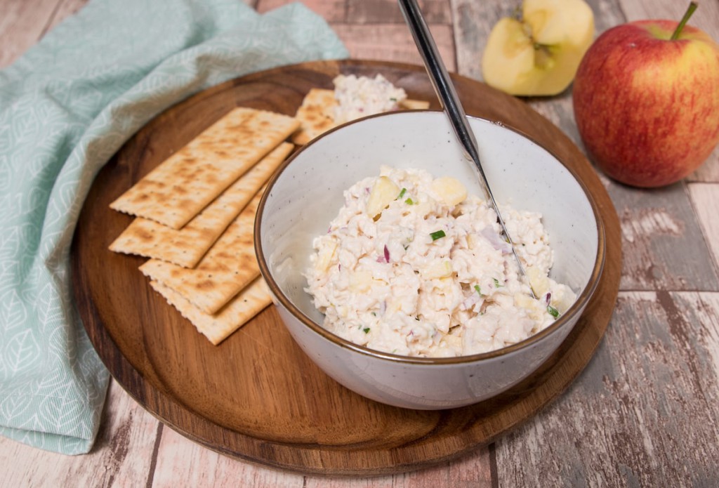 Heb je nog wat kipfilet over? Maak er een heerlijke borrelsalade van om op een toastje of op brood te smeren. Deze kipsalade met appel en gembersiroop is mijn favoriet.