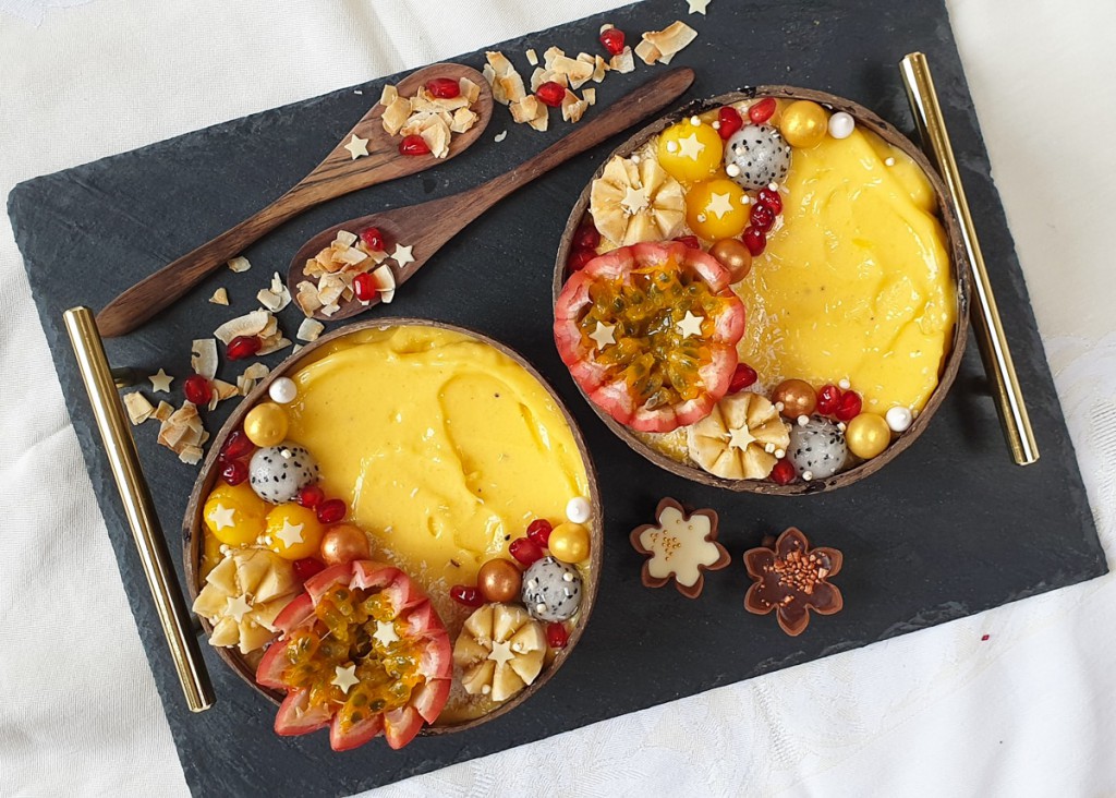 Het lievelingsontbijt, lunch, tussendoortje en avondeten van Rebekka is een smoothiebowl. Deze tropische smoothiebowl met mango en ananas is niet alleen superlekker maar ook een pareltje om te zien. Vandaag heb je alle tijd om je uit te leven met de topping. Kijk nou wat een plaatje! Wie ga jij hiermee verwennen?