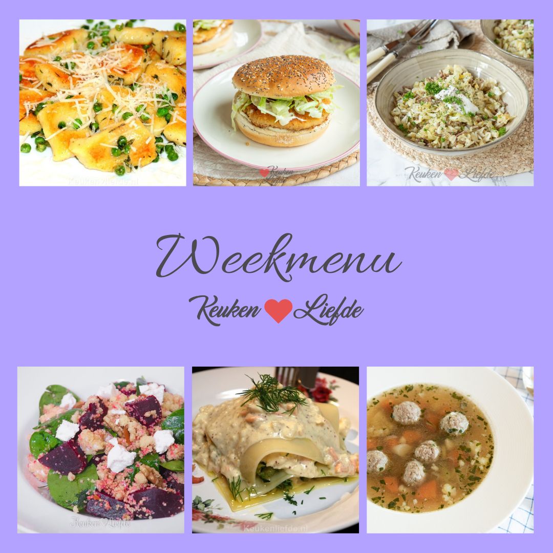 Omdat er bij de meeste mensen vaak één dag in de week is waarop er niet gekookt wordt — omdat er bijvoorbeeld kliekjes zijn, of omdat je zin hebt in een frietje of iets anders — deel ik in dit weekmenu 5 hoofdgerechten. Op zaterdag dit keer groentesoep met ballen en op zondag lekkere croissantbroodjes met gele room. Tip: Lekker met Hollandse aardbeien!
