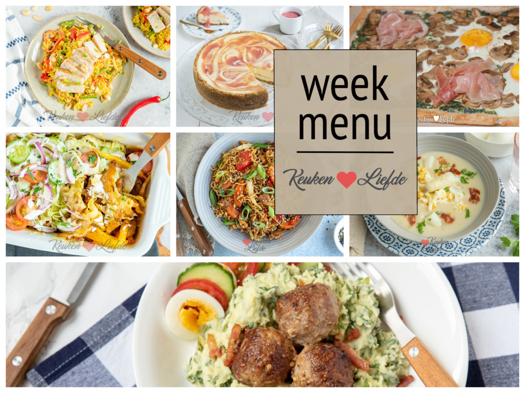 Een boodschappenbriefje maken voor een nieuwe eetweek? Soms is het lastig om te bedenken wat je de hele week wilt eten. Laat je inspireren door ons weekmenu met lekkere en gevarieerde maaltijden voor elke dag en iets lekkers voor in het weekend.