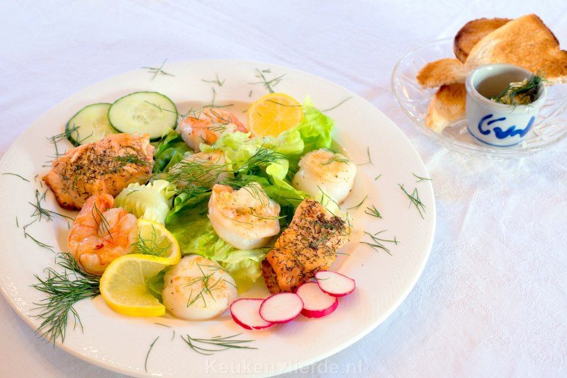 Op vrijdag gaan we voor makkelijk en lekker. Een salade met vis bijvoorbeeld. Serveer er wat knapperig geroosterd brood en kruidenboter bij en je hebt een feestmaal. Je kunt in principe alle soorten vis gebruiken die je zelf lekker vindt. Verse vis, gerookte vis, gebakken vis; kijk gewoon wat je visboer heeft liggen en waar je zin in hebt.