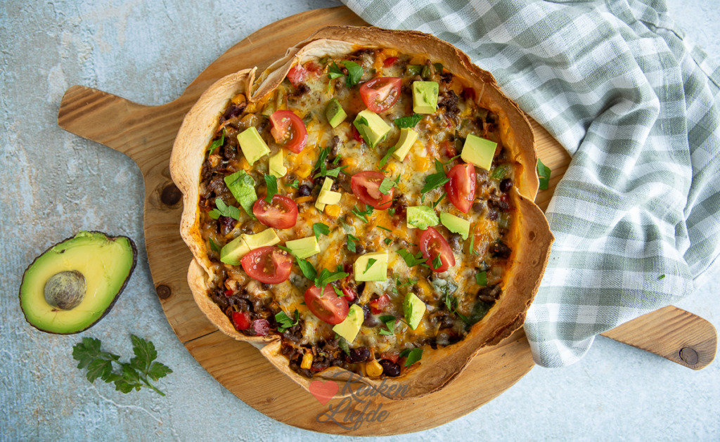 Tortillataart met gehakt en groenten