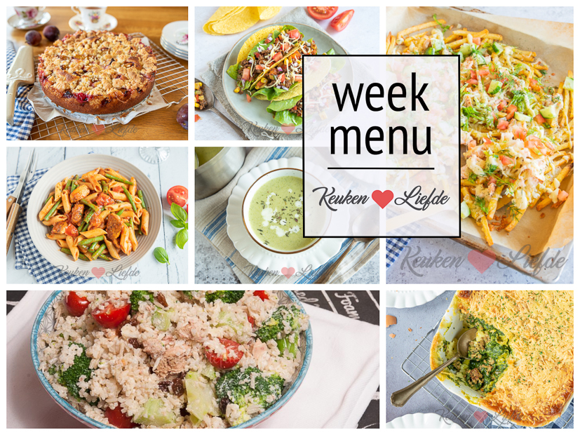 Elke vrijdag delen wij hier een nieuw weekmenu met lekkere en gevarieerde maaltijden voor doordeweeks en natuurlijk wat lekkers voor in het weekend. Laat je inspireren!