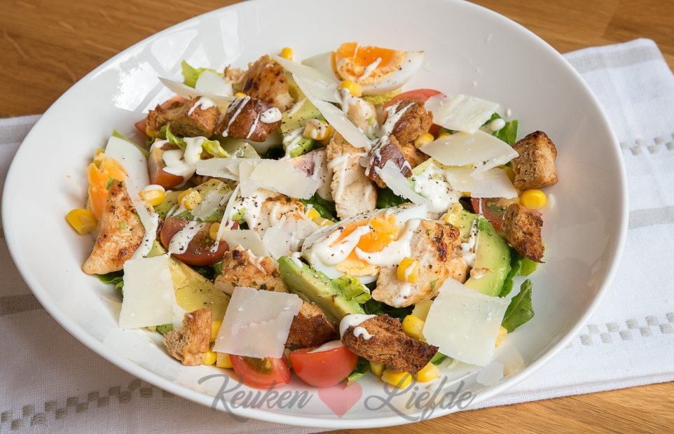 Mijn favoriete maaltijdsalade maar dan met een twist! Deze Mexicaanse caesar salade is verrijkt met malse stukjes kip, cherrytomaat, mais en avocado. Hij is supermakkelijk om te maken en klaar in een handomdraai! Lekker als lunch of als hoofdgerecht.