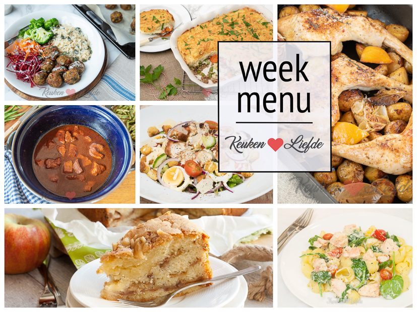 Elke vrijdag delen wij hier een nieuw weekmenu met lekkere en gevarieerde maaltijden voor doordeweeks en natuurlijk wat lekkers voor in het weekend. Laat je inspireren!