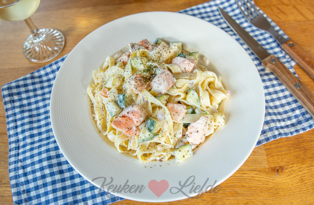 Maandag: Tagliatelle met zalm, courgette en roomsaus