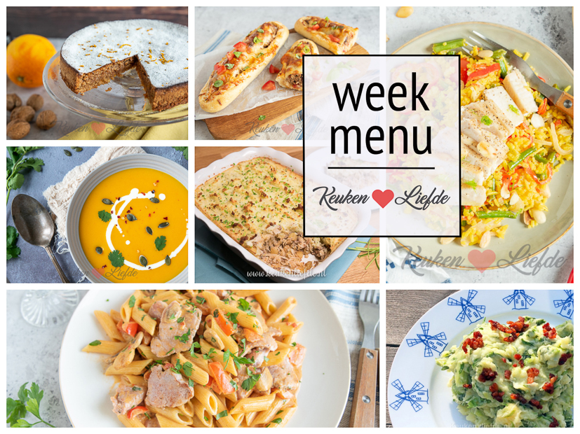 Elke vrijdag delen wij hier een nieuw weekmenu met lekkere en gevarieerde maaltijden voor doordeweeks en natuurlijk wat lekkers voor in het weekend. Ik wens je een smakelijke week toe!