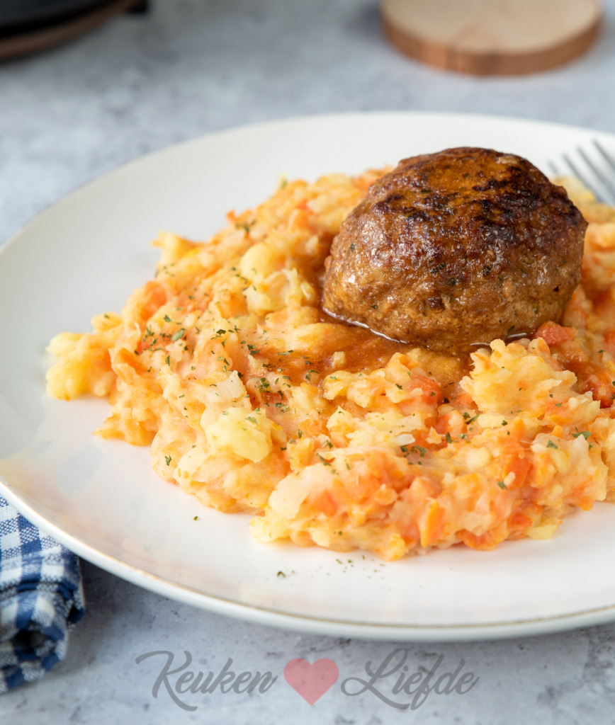 Een smaakvolle stamppot van aardappelen, wortels en uien: dat is de klassieke Hollandse hutspot! Een eenvoudig gerecht voor het hele gezin, en in een mum van tijd klaar.