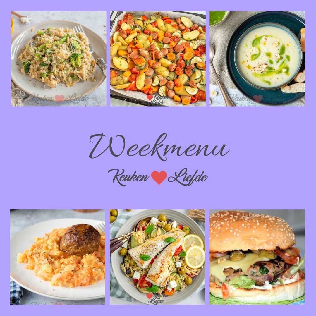 Wat eten we vandaag? Een vraag die elke dag terugkomt. Daarom vind je hier elke vrijdagochtend een nieuw weekmenu met makkelijke maaltijden voor doordeweeks, een verwengerecht op zaterdag en een zoete verrassing op zondag. Pak je pen en boodschappenlijstje en ga aan de slag!