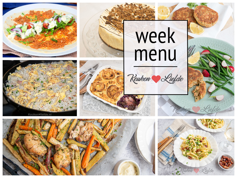 Elke vrijdag delen wij hier een nieuw weekmenu met lekkere en gevarieerde maaltijden voor doordeweeks en natuurlijk wat lekkers voor in het weekend. Ik wens je een smakelijke week toe! In dit nieuwe weekmenu vind je:
