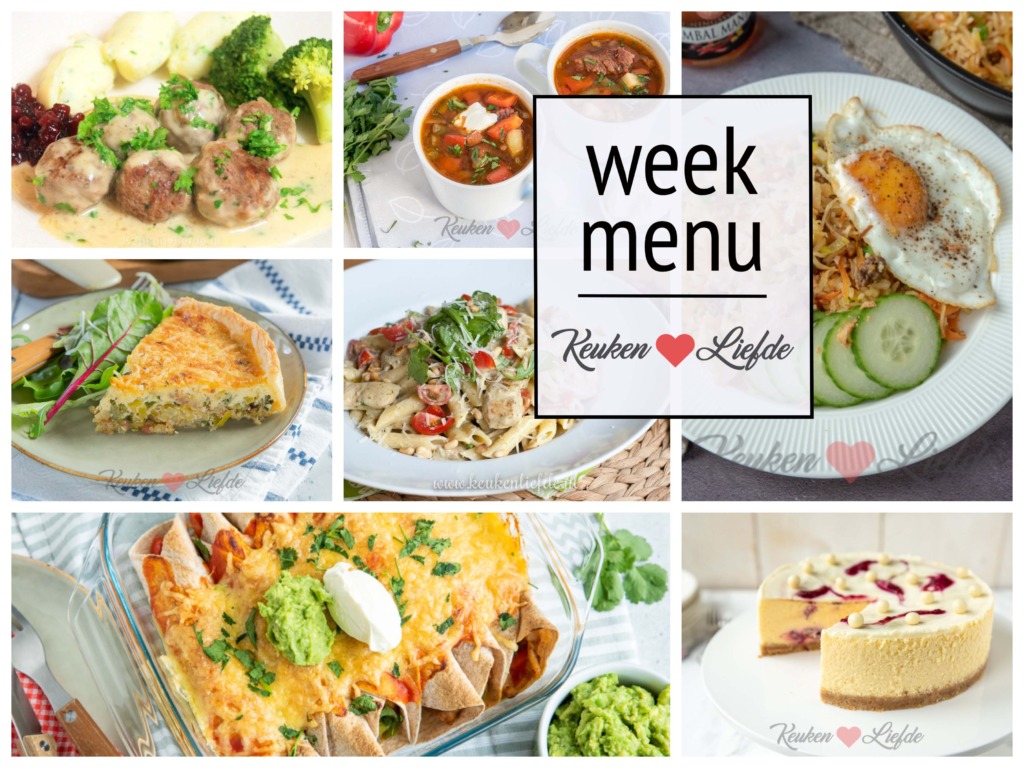 Boodschappenbriefje maken voor een nieuwe eetweek, maar vind je het lastig om weer iets nieuws te bedenken? Laat je inspireren door ons weekmenu met lekkere en gevarieerde maaltijden voor elke dag en iets lekkers voor in het weekend. In dit nieuwe weekmenu vind je: