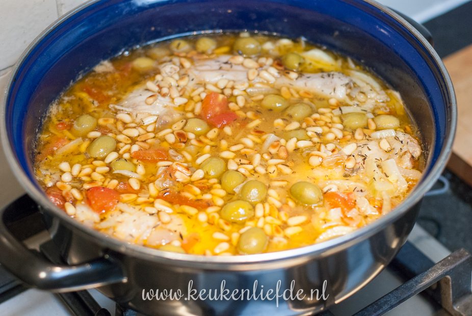 Mediterraanse kipstoofschotel met venkel en olijven. Lekker met stokbrood en kruidenboter en salade.