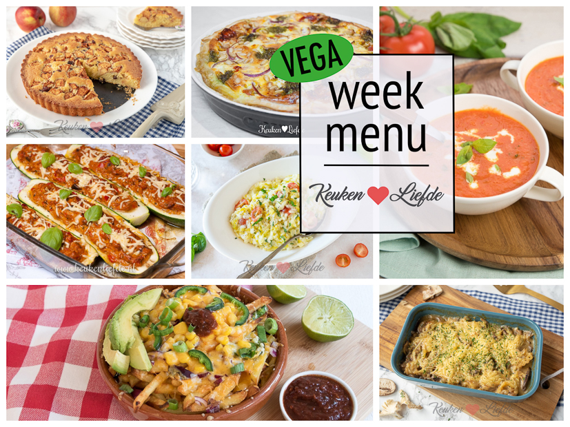 Omdat volgende week is uitgeroepen tot Nationale Week Zonder Vlees is dit weekmenu lekker vega met: een makkelijke ovenpasta met champignonroomsaus, gevulde courgette met roomkaas en ratatouille, quiche caprese en preirisotto met parmezaan. In het weekend geniet je van Mexicaanse ovenfriet, geroosterde paprika-tomatensoep en een heerlijke boeren appelcake! Geloof me, je mist het vlees geen seconde. Ik wens je een smakelijke week toe!
