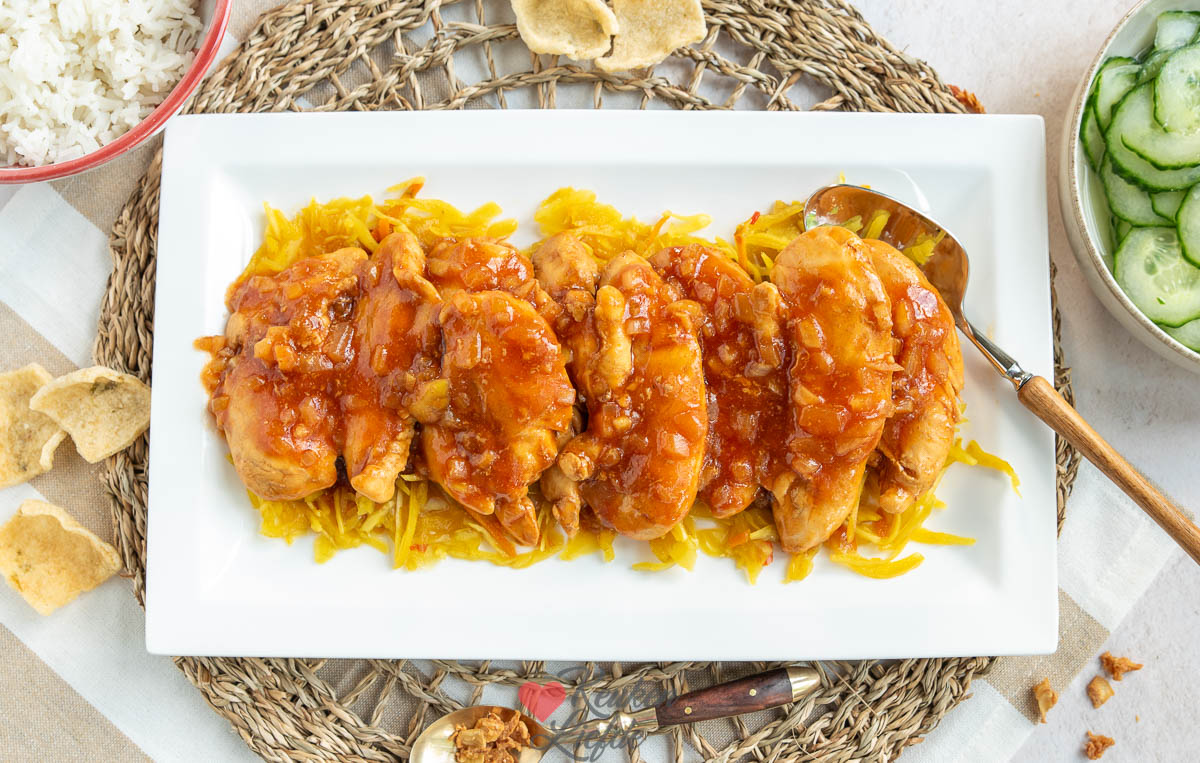 Snelle kip pangang met kiphaasjes: in no-time klaar met een zoet-pittige saus. Ideaal voor doordeweeks.