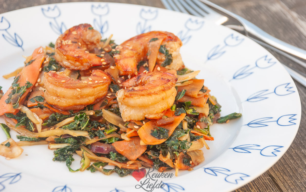Boerenkool roerbak met garnalen (± 30 min)