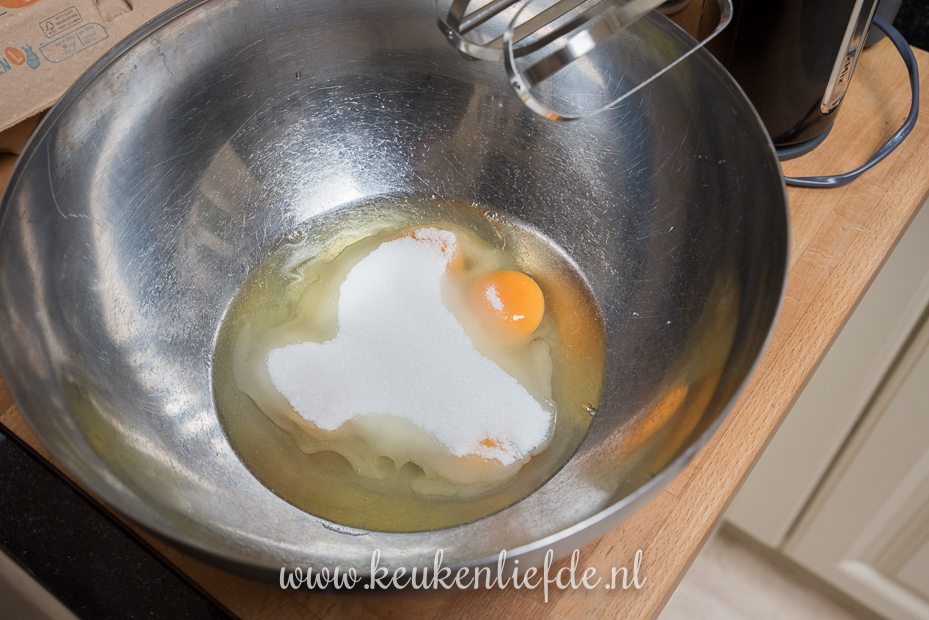 Verwarm de oven (boven- en onderwarmte) voor op 160 graden. Vet de tulbandvorm goed in met olie.