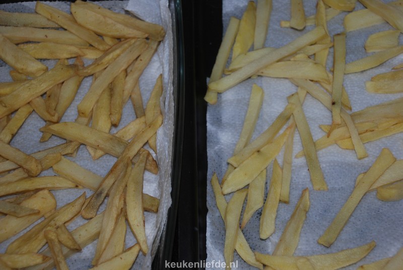 Wij eten er graag zelfgemaakte kipnuggets of stoofvlees bij maar deze frietjes zijn zonder iets erbij ook al een feestje!