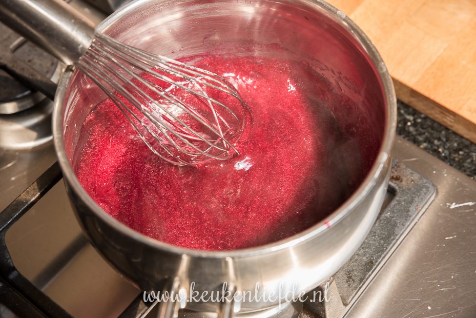 Hoi Wanda, inmiddels heb ik zelf geleerd dat je beter de maizena eerst tot een glad papje kunt roeren met een scheutje koud water en pas dan aan de te binden vloeistof toevoegen. Zo krijg je geen klontjes! Ik heb het recept aangepast. Als je toch klontjes krijgt kun je het sap even door een fijne zeef halen.