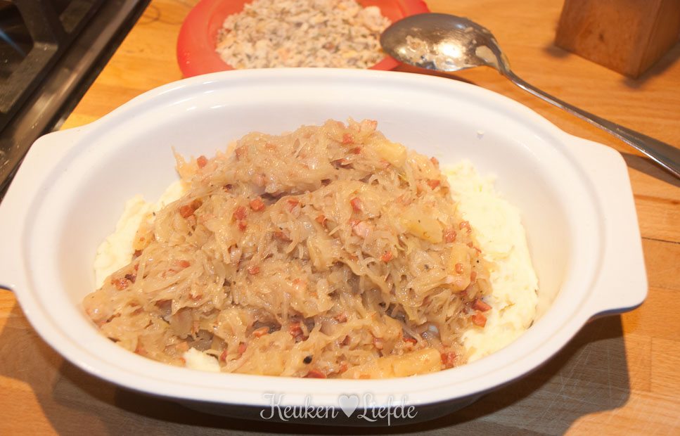 Heerlijk recept! Ik heb alleen wel 1000 gram zuurkool gebruikt. 500 gram is voor 4 eters aan de krappe kant.